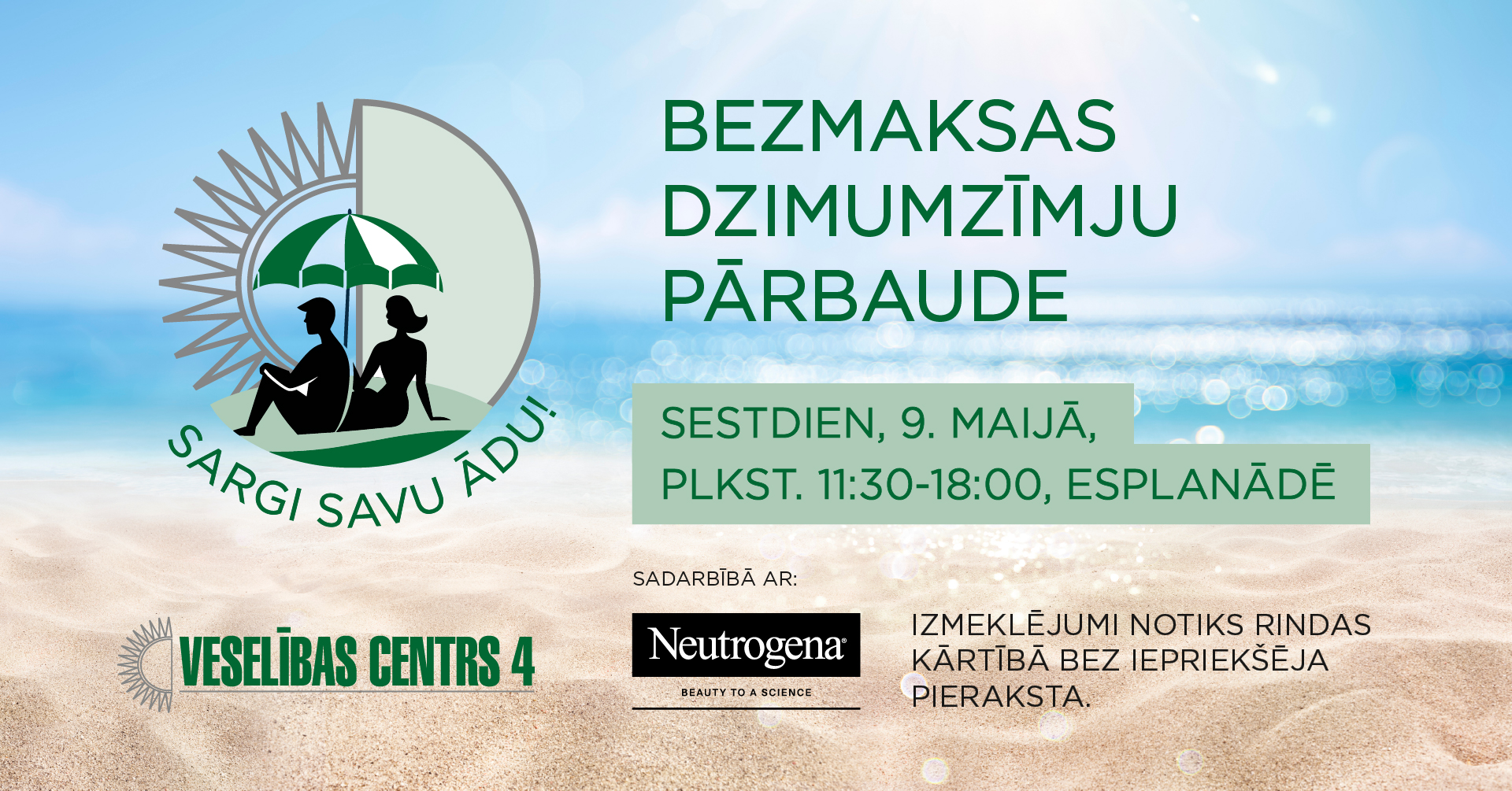 “Veselības centrs 4” ādas vēža kampaņas “Sargi savu ādu!” sadarbības partneris: “Neutrogena”.