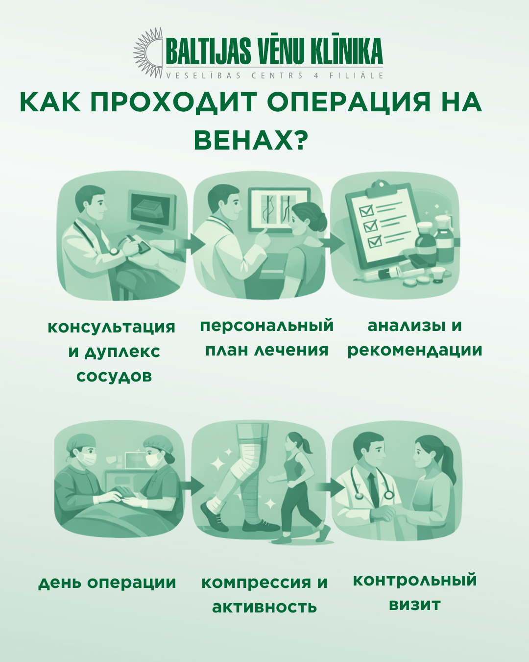 Помните! Современные операции на венах являются малоинвазивными, и большинство пациентов быстро возвращаются к привычному ритму жизни. Регулярная ходьба, компрессионная терапия и соблюдение рекомендаций врача — ключевые факторы безопасного и успешного восстановления!
